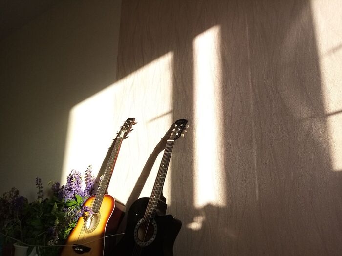 Это мне цветочков притараканили. Теперь это мои любимые цветы) гитары для красоты поставила,играла только на одной)