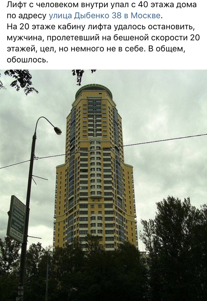 Вспомнил историю с дружбаном в 1-2 классе. Дружбан жил в 17-ти этажке, где лифт реагировал на вес. Т.е. если в кабину никто не вошел и нажать кнопку любого этажа - лифт не поедет. Лифт также не определял наличия в нём моего щуплого дружбана и не вёз его. Поэтому Серега часто использовал 2 кирпича для веса, которые часто лежали на 1ом этаже.