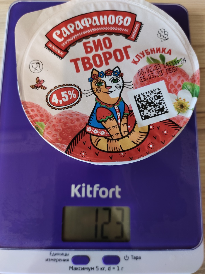 В ближайшей Пятёрочке был куплен творожок с клубникой Сарафаново, так как привлёк внимание ценником, который был сравнительно небольшим с рядом стоящими творожками и йогуртами. Кроме как в Пятёрочке-Перекрёстке-Карусели эта фирма (или ТМ, как правильно?) нигде не продаётся.