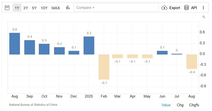В целом инфляция в Китае практически нулевая и выглядит так.