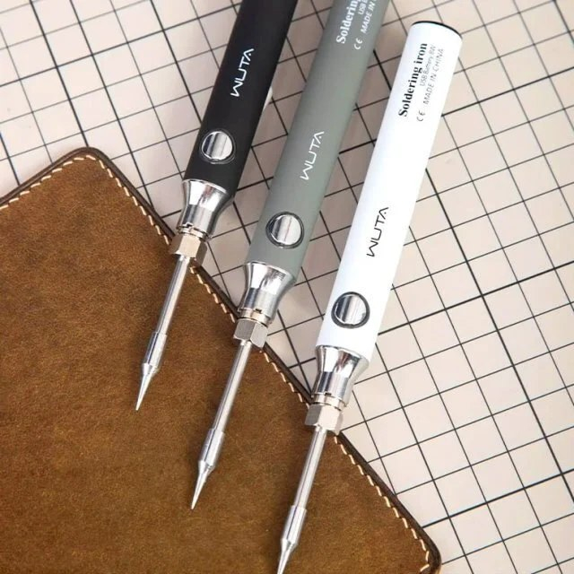 Инструмент от WUTA работает автономно от аккумулятора либо через USB. Температура регулируется в пределах от 330 до 450 градусов, что позволяет паять разные детали. Встроенный керамический нагреватель быстро разогревается и экономично расходует энергию.