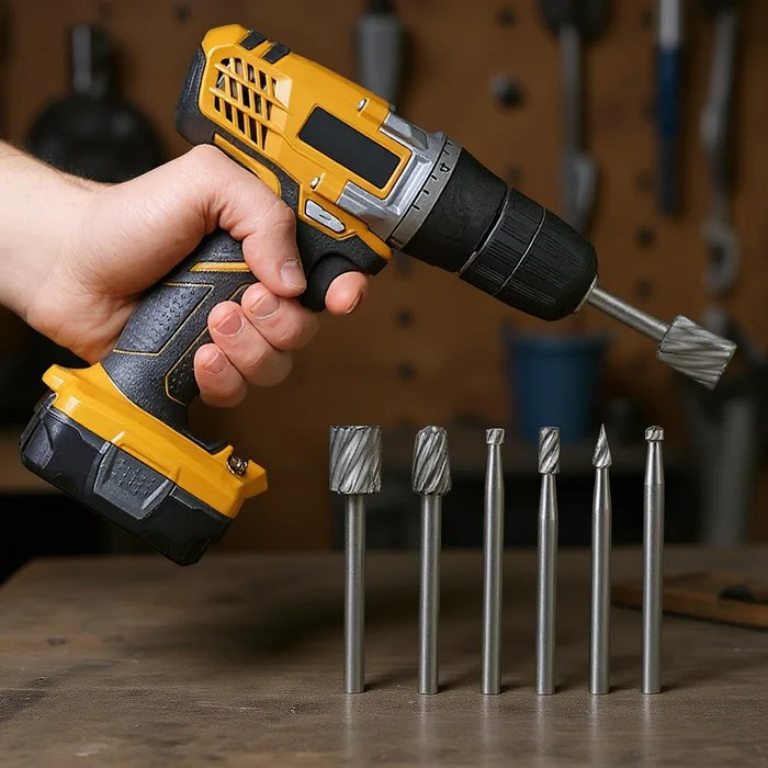 В комплект входят шесть фрез, выполненных из прочной инструментальной стали. Они выдерживают высокие температуры и подходят для обработки дерева, металлов и пластика. Все фрезы имеют одинаковую рабочую длину и хвостовик диаметром 3,17 мм.