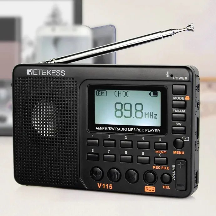 Модель Retekess V115 поддерживает приём FM, AM и SW волн, а также воспроизведение MP3 с карт памяти или USB. Есть три режима записи и встроенный микрофон. Несмотря на компактность, звук получается мощным и чистым.