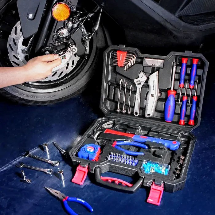 WORKPRO предлагает универсальный комплект из 160 предметов, включая ключи, отвёртки, плоскогубцы, рулетку и молоток. Все инструменты размещены в прочном кейсе с продуманными отсеками.