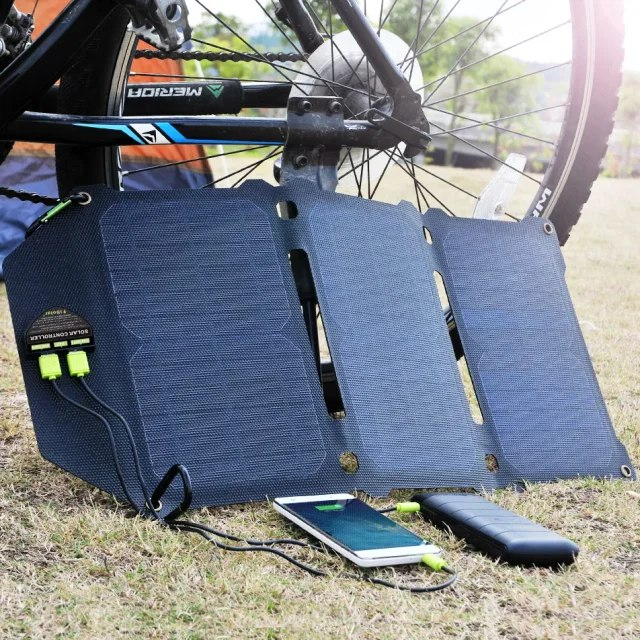 Портативная панель ALLPOWERS мощностью 21 Вт превращает солнечный свет в электричество даже при облачной погоде. Она заряжает смартфоны, планшеты и внешние аккумуляторы через USB. Конструкция складная и водонепроницаемая, что удобно для походов.
