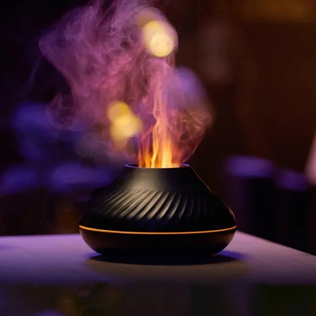 Модель KINSCOTER совмещает функции увлажнителя воздуха и ароматизатора. Эффект пламени создаётся благодаря светодиодной подсветке, которую можно регулировать по цвету. Устройство работает до девяти часов без дозаправки, а при отсутствии воды автоматически отключается.