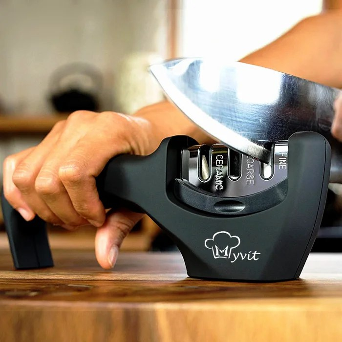 Прочный корпус с алмазным напылением и прорезиненное основание делают эту точилку безопасной и надёжной. Она позволяет затачивать ножи под разными углами, сохраняя их идеальную остроту.