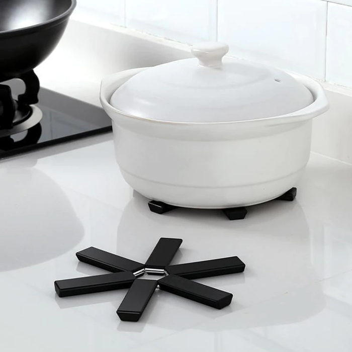 Корпус из теплостойкого пластика выдерживает температуры, при которых деревянные и пластиковые поверхности начинают деформироваться. Толщина изоляции достаточна, чтобы горячая сковорода или кастрюля не передавала тепло столу или столешнице. Материал не впитывает влагу и легко протирается влажной тряпкой.