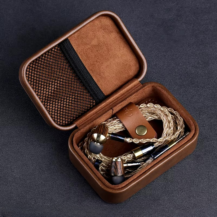 В комплекте идёт кожаный ремешок для наматывания кабеля, который занимает минимум места внутри чехла. Размер 12 на 8 сантиметров рассчитан на многие модели наушников с зарядным футляром.