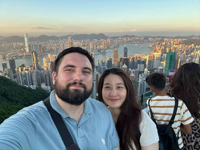 1) Это мы делаем селфи на фоне Гонконга со смотровой площадки. Терраса на вершине Виктории Пик и туда можно купить билет уже внутри. Там что-то типа многоэтажного ТЦ. Их там 2-а таких рядом, в одном из них.