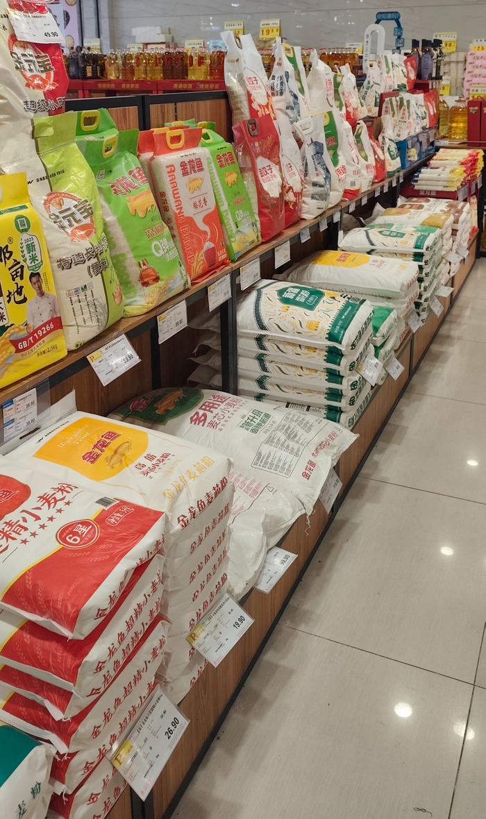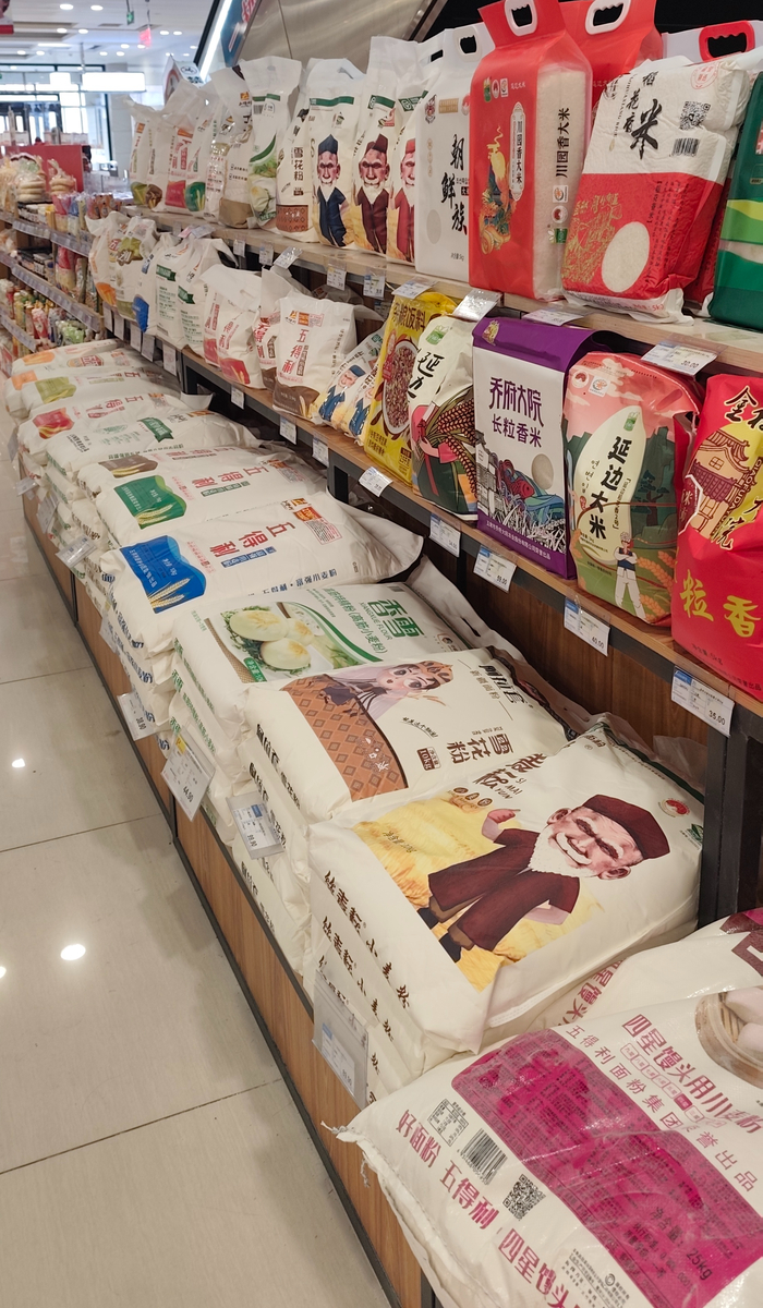 Хотели купить несколько видов риса - вообще нет мелкой фасовки. Минимально 5 кг. Мука тоже только мешками. А вот крупы типа манки или пшена есть и по полкило. Популярностью не пользуются, видимо))