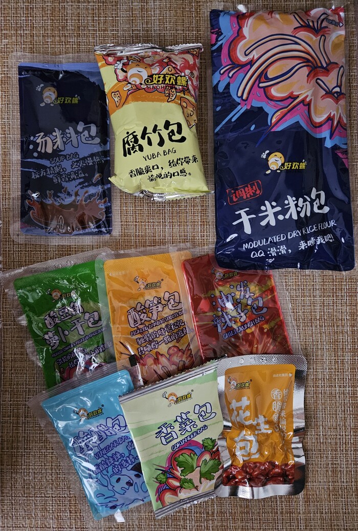 Пакет с бульоном из улиток. По отзывам читал неоднократно, что он вонючий, но я никакой вони не учуял. Запах есть, непривычный нашему носу, но точно не вонь. На вкус сильный, пряный, в меру острый и достаточно солёный.