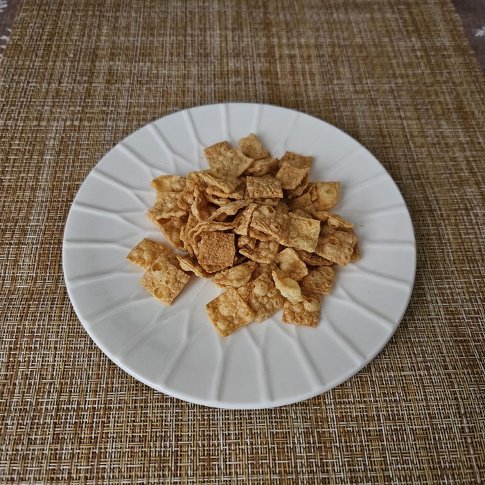 На вкус сырая лапша напоминает сухарики с томатом, или с чем-то ещё, она немного солёная и имеет какой-то овощной вкус.