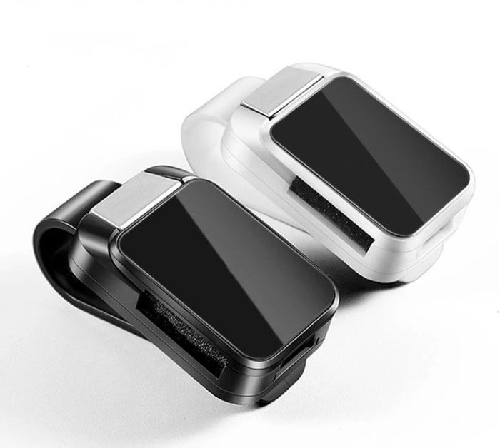 Компактный держатель для очков крепится к солнцезащитному козырьку автомобиля и позволяет хранить аксессуар в удобном и защищённом месте. Конструкция выполнена из прочного пластика с пряжкой из металлического сплава, что обеспечивает надёжность фиксации.