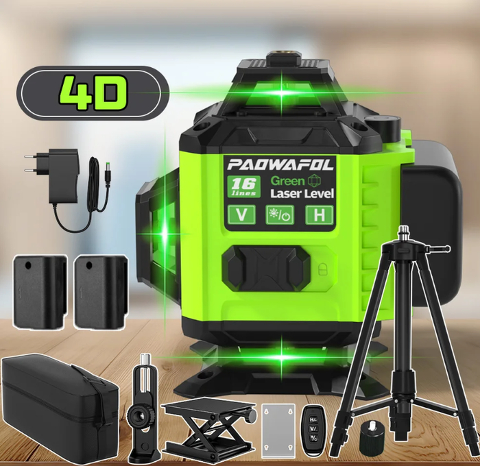 19. Зелёный лазерный уровень PAOWAFOL 16 линий 4D со штативом