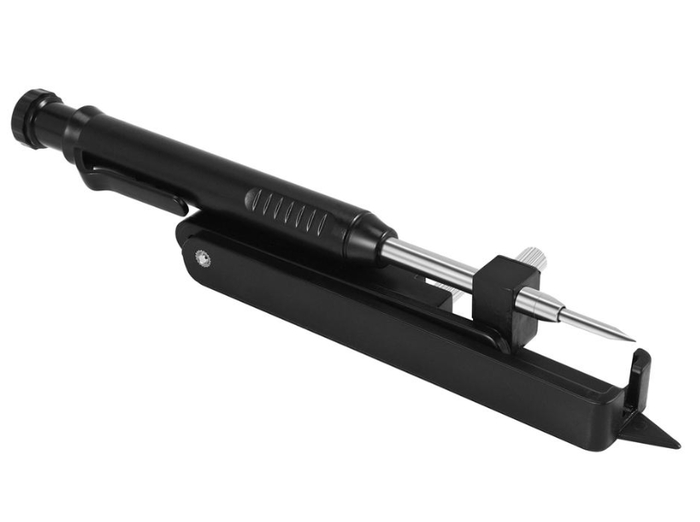 Регулируемая направляющая фиксирует расстояние между рабочим кончиком и основанием, что даёт точную симметрию при разметке.