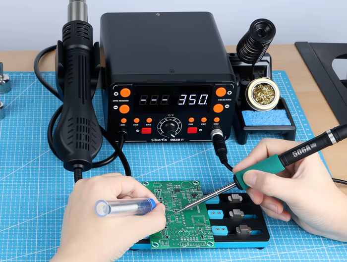 Термостабильность и отзывчивое управление обеспечивают уверенный контроль, а эргономичная рукоятка паяльника делает процесс максимально комфортным и точным.