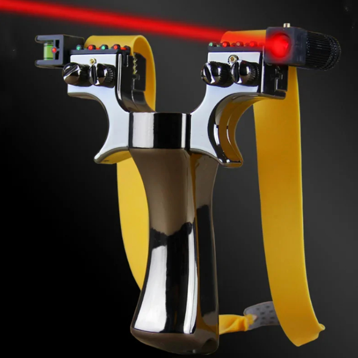 Современная рогатка с лазерным прицелом сочетает традиционный принцип метания и современные технологии прицеливания. Корпус выполнен из металлического сплава, обеспечивающего прочность и устойчивость к нагрузкам.