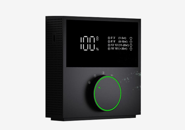 На передней панели расположен цифровой дисплей, отображающий параметры работы и состояние заряда. Регулировка выполняется поворотным кольцом, поэтому управление остаётся комфортным даже в тёмной комнате. Благодаря встроенному аккумулятору очиститель не привязан к розетке и может работать в разных зонах квартиры.