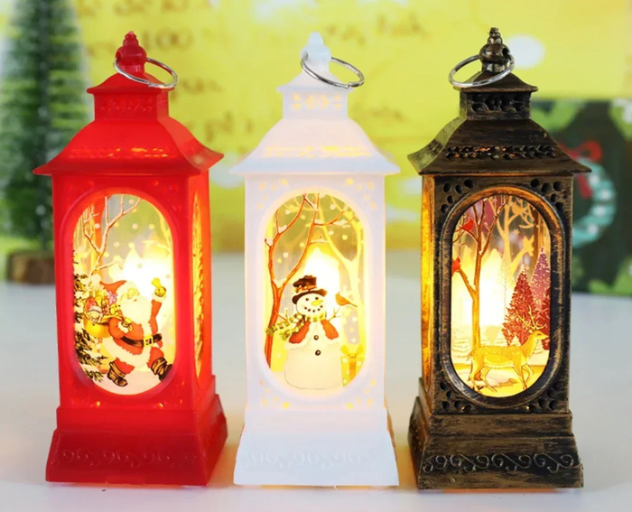 Декоративные фонарики создают атмосферу зимнего праздника и подходят для оформления интерьера, фотозон, каминов или новогодних композиций. Корпуса выполнены в классическом стиле маленьких уличных фонарей, а внутри размещена мягкая светодиодная подсветка, формирующая приятное тёплое свечение. Светильники хорошо смотрятся как поодиночке, так и в составе набора, создавая объёмную композицию с лёгким мерцанием.