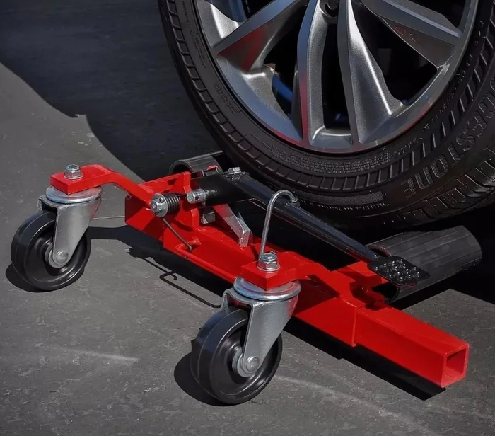 Гидравлические автомобильные коньки, которые используются для перемещения машин в гаражах и сервисных центрах. Конструкция рассчитана на нагрузку до 1500 фунтов (около 680 кг) на каждое колесо, что позволяет работать даже с крупными автомобилями.