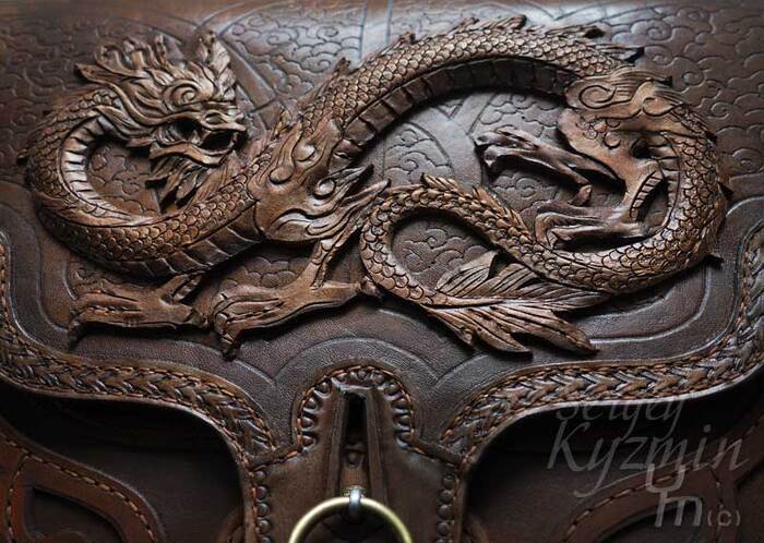 [моё] Дракон Ручная работа Кожа натуральная Изделия из кожи Рукоделие без процесса Кожа Сумка Китайский дракон Длиннопост