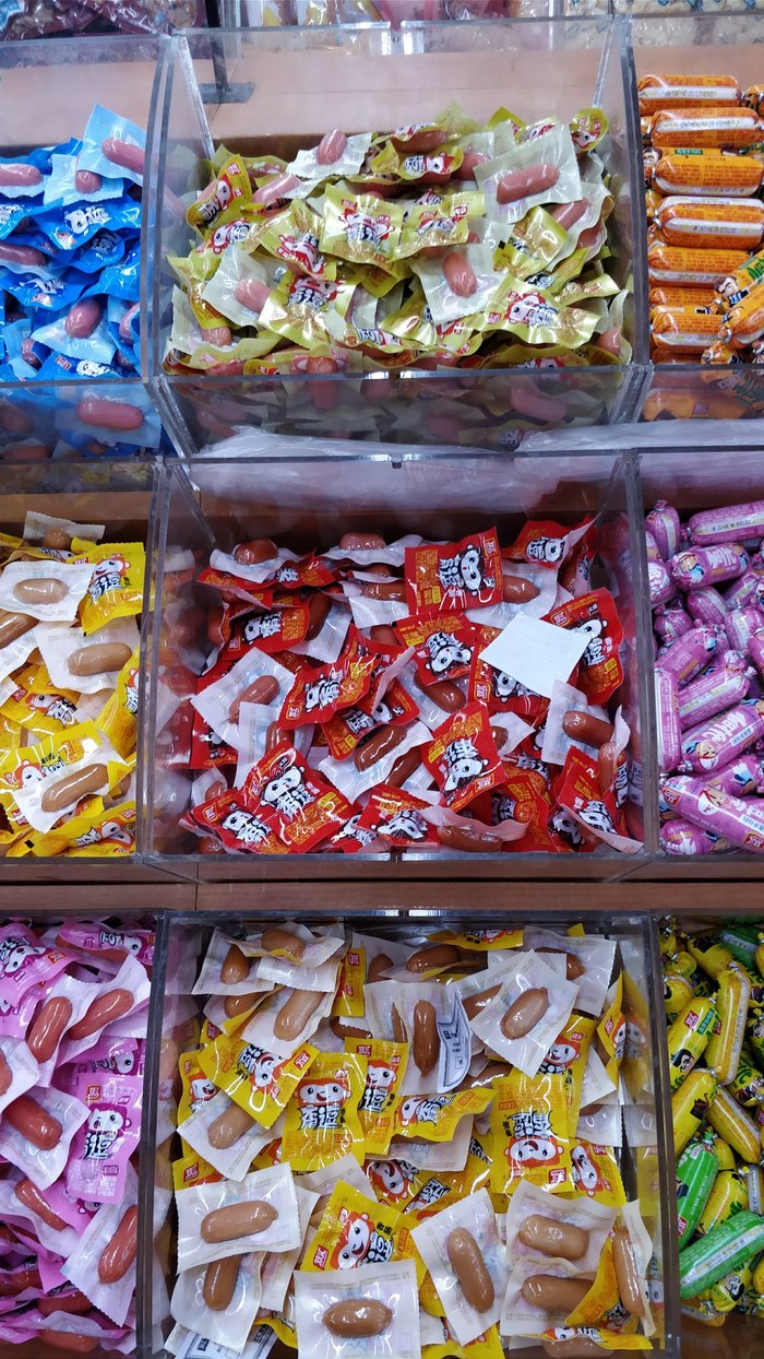 А вот что часто едят в Китае - это снеки. Вернее, любую еду можно найти в виде снеков: упакованные по 1 шт. печеньки, ягоды, фрукты, куриное яйцо. Одна куриная ножка или одна сосиска. Желе, колбаски, конфеты, сухофрукты и т.д. Это правда удобно - положил в карман или сумку, перекусил в любое время.