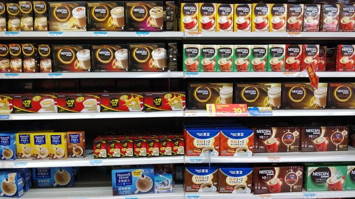 В продаже очень много растворимых напитков. Растворимый "чай с молоком", "латте", "жасминовый чай" и т.д. Честно говоря, не пробовал. Как0то пока не хочется. Но судя по обилию в магазинах - у китайцев пользуется спросом.