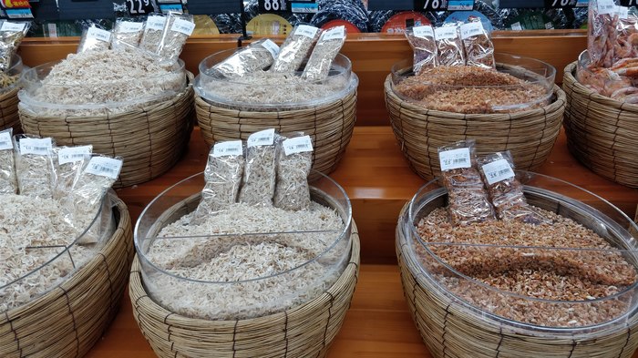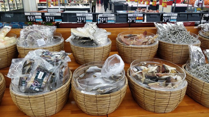Среди сушенных продуктов есть необычные экземпляры, типа сушенной сладкой свинины, сушеной сладкой рыбы и т.д. Аппетита ни вид,ни запах не вызывает.