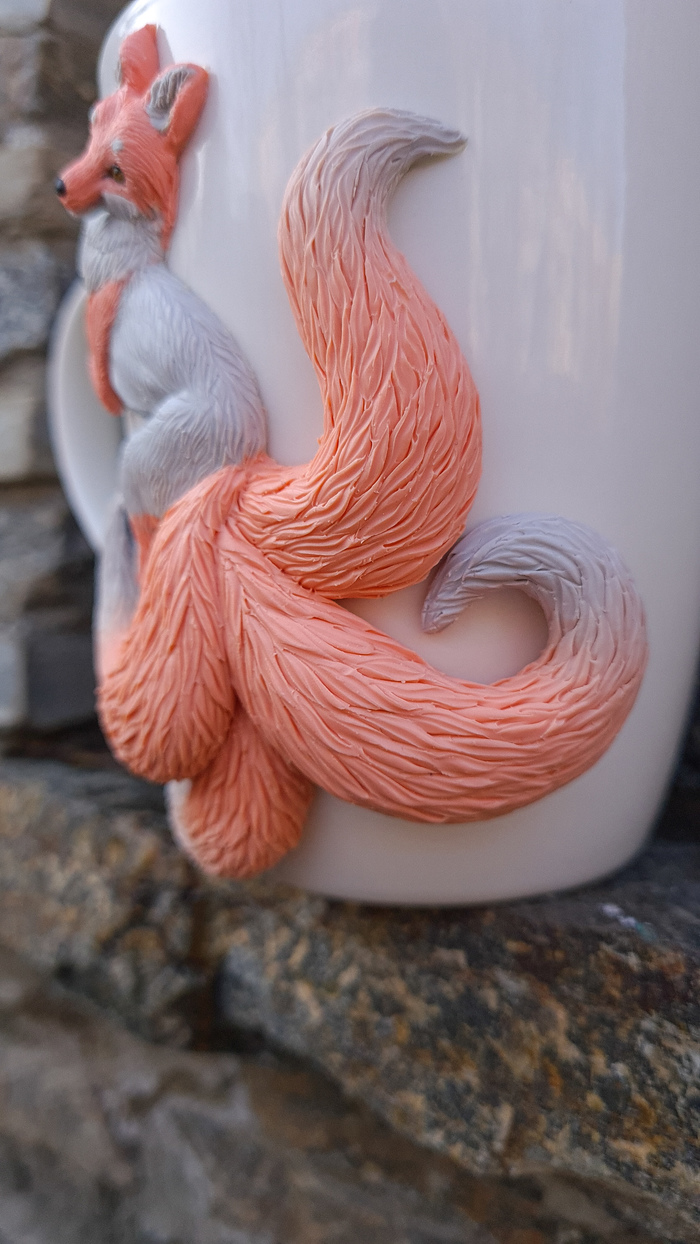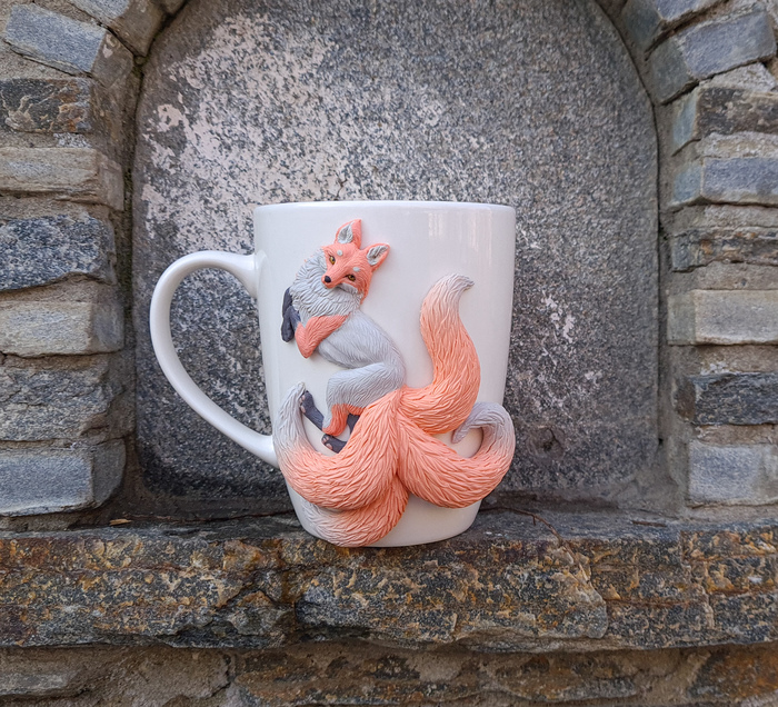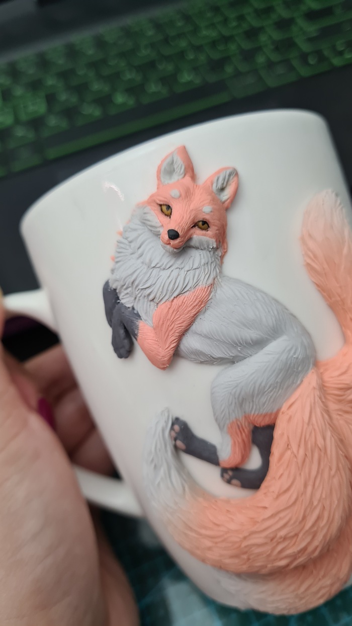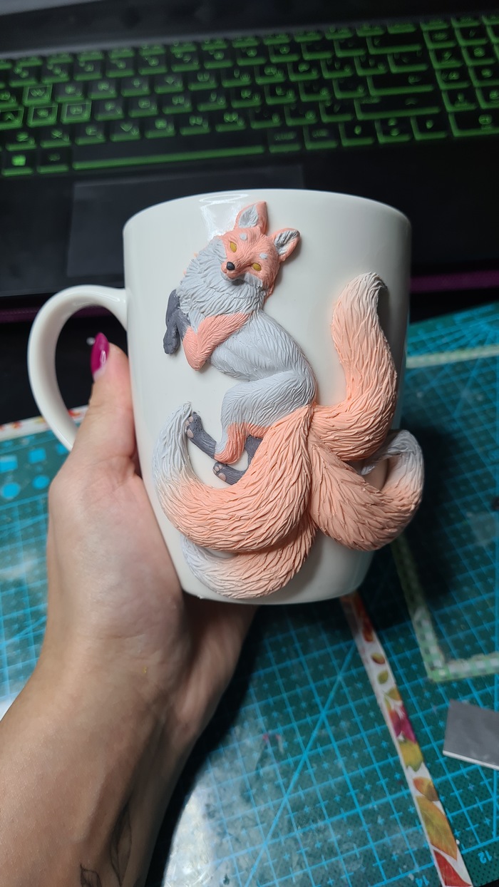 Вот так Кицунэ отправилась уже запекаться. После была роспись глаз и самой кружки по желанию клиента.