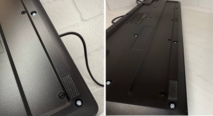 Благодаря этому, попав под клавиши, вода просто вытечет через специальные дренажные отверстия, расположенные недалеко от резиновых ножек. Согласитесь, проще протереть стол, чем экстренно бежать за новой клавиатурой.