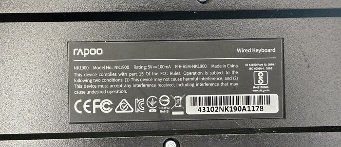 RAPOO NK1900 - полноразмерная клавиатура, выполненная из слегка шероховатого пластика, очень приятного на ощупь. На первый взгляд корпус выглядит прочным, по крайней мере при давлении не прогнулся, не скрипел.