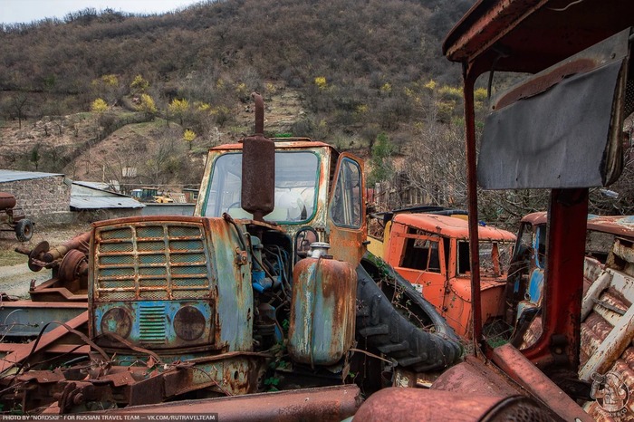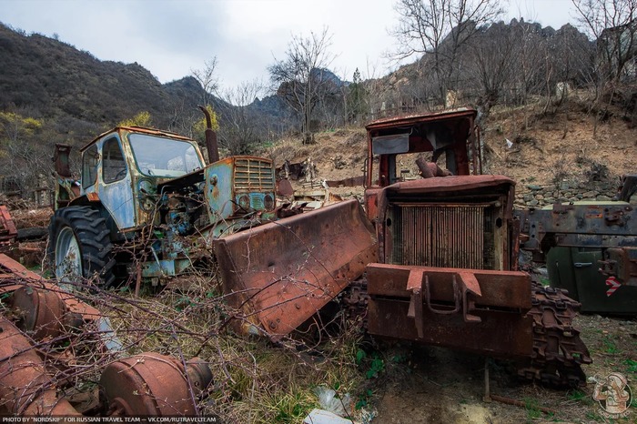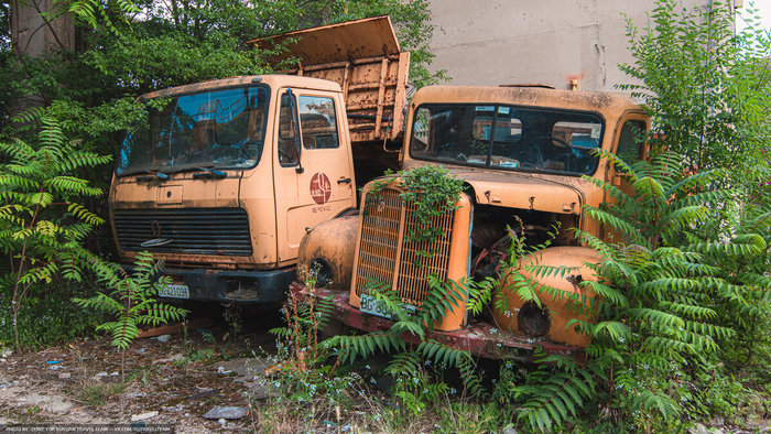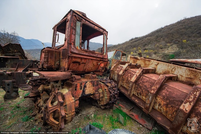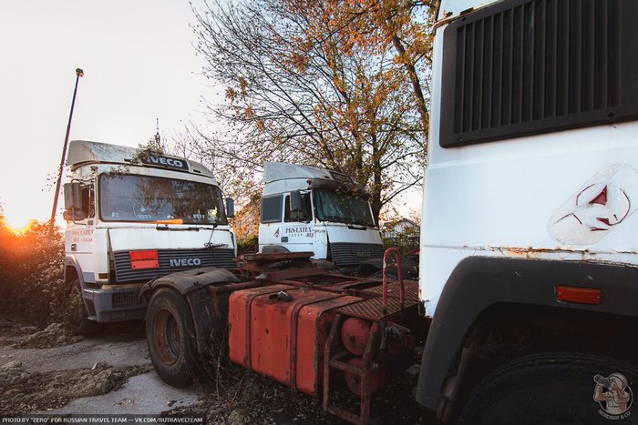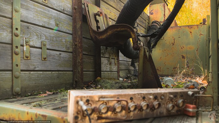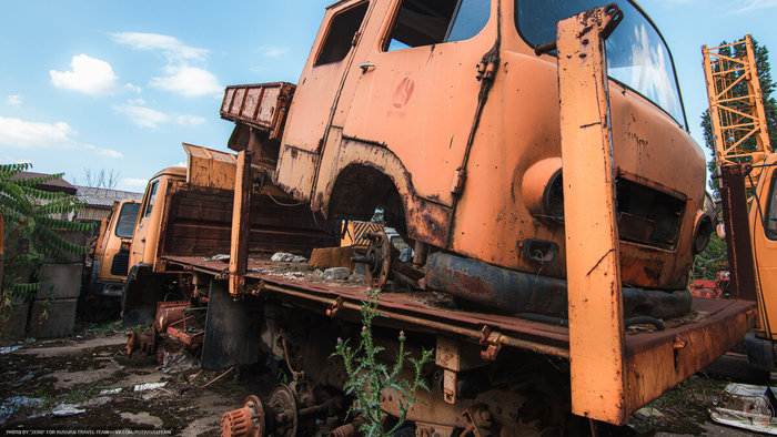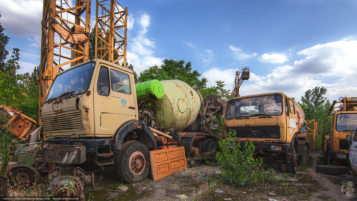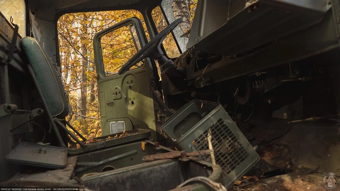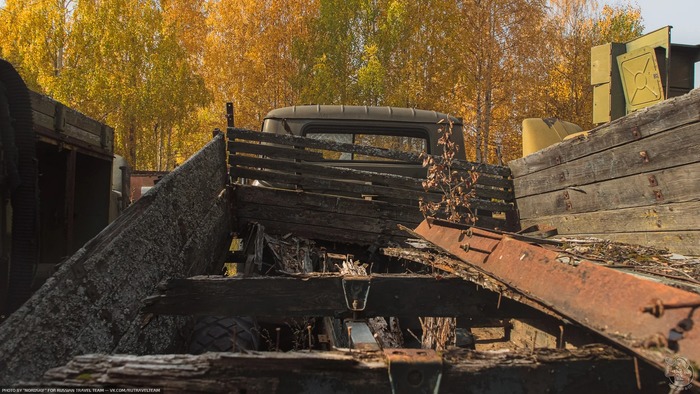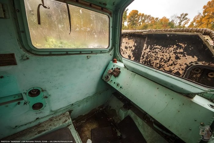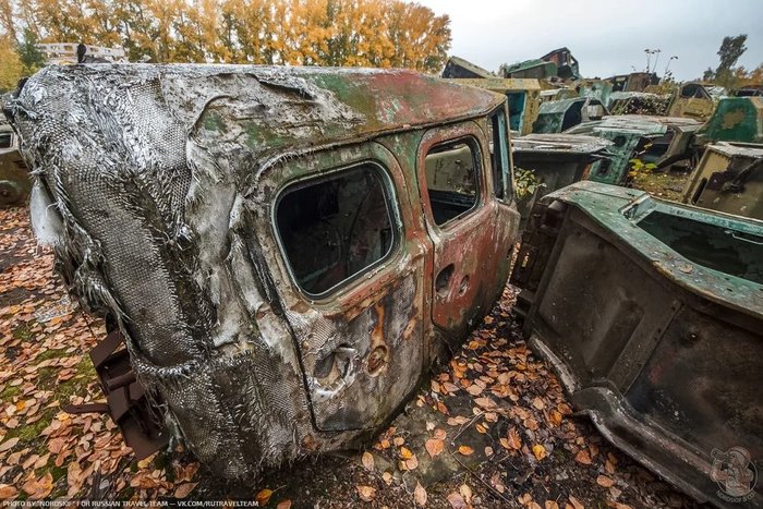И снова ракетовозы. Возможно среди них есть и останки оперативно-тактических ракетных комплексов "Темп-С", также ликвидированных по договору РСМД. Место реально атмосферное, да ещё и с какой техникой.
