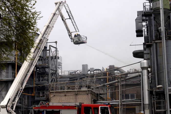 Взрыв во время пожара на Литовском деревообрабатывающем заводе 'Klaipedos mediena'