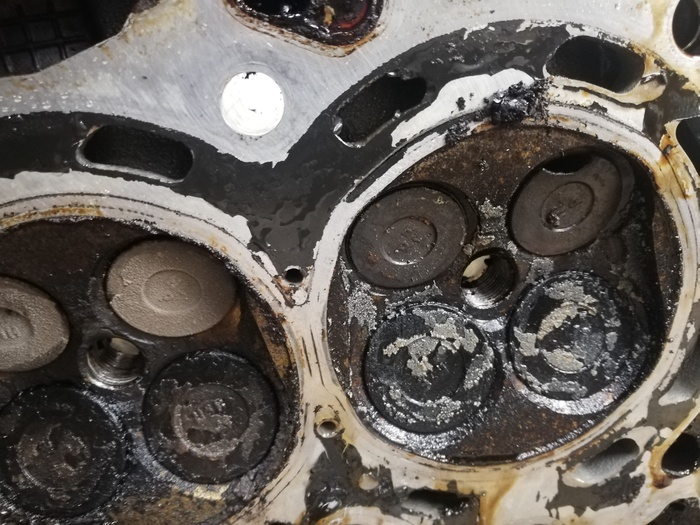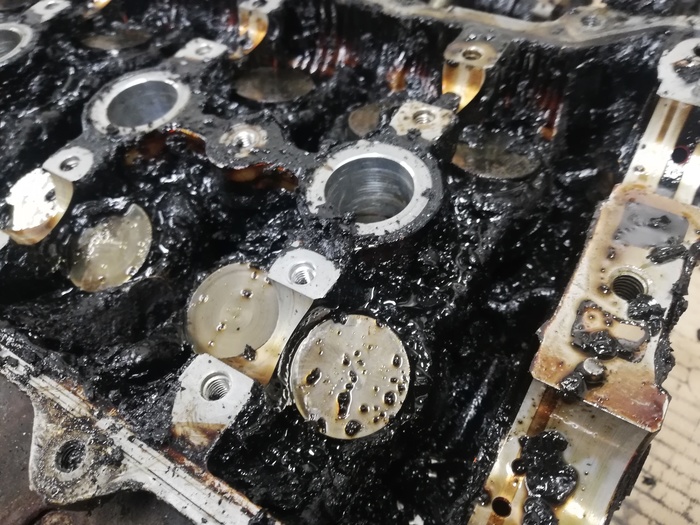 Вот ещё один экземпляр с последствиями "неправильной" любви к автомобилю. Приехала машина с трясущимися мотором да и владелец жаловался на то, что в прыткости она потеряла. Замер компрессии показал ноль в первом цилиндре, а в остальных было 10-11!!!!!!