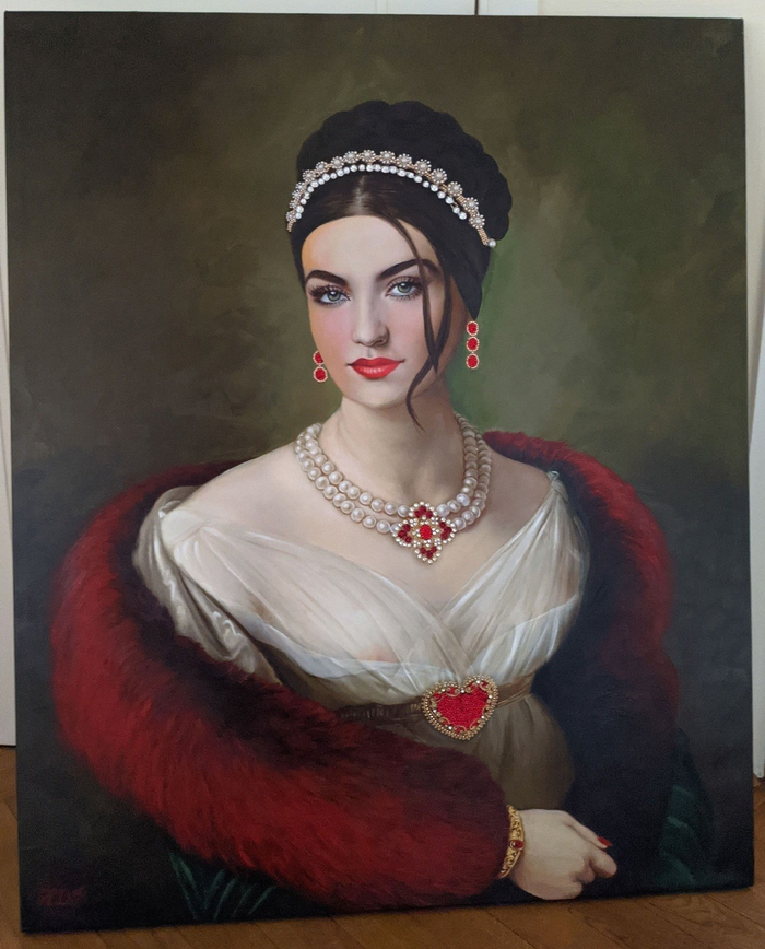 Чтобы полюбоваться, придется отправиться в Лувр. Обратите внимание на черты лица и воротник платья.