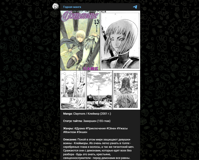 Так и появились настоящие шедевры: «Берсерк», «Ковбой Бибоп», «Эрго Прокси» и т. д. И сегодня мы поговорим об ещё одной темной жемчужине — манге «Клеймор».