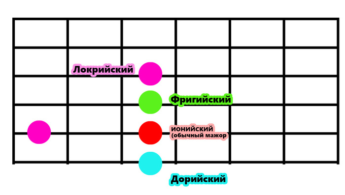 Пытливый читатель спросит, а где мистер локрийский? Вот здесь, между мажорной группой и минорной: