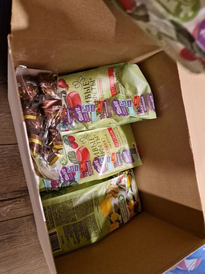 После праздников согласовали доставку. Ну что скажу – не ожидал я такого подарка… коробка с мармеладками – 12 пакетиков всяких видов (чуть больше 2 кг мармеладок) и ещё к ним пакетик конфет…. Это крайне, крайне приятно!