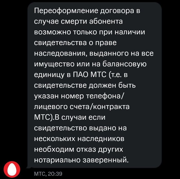 Ситуация - в 2018 году скончалась мама. Только сейчас вспомнил, что мой номер с 2011 года оформлен на нее.