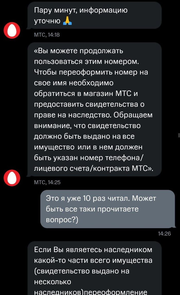 Да и вообще, МТС, разве это уровень клиентоориентированности и сервиса?)) На второй номер с Теле2 это заняло 15 минут нахождения в офисе, и всего лишь паспорт+свидетельство о смерти...