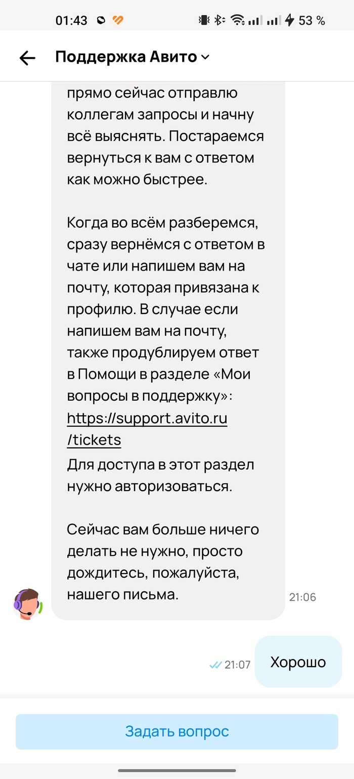Ну, решив я подождать, особой срочности не было, я пошёл заниматься своими делами. Однако прождав необходимое количество времени, изменений я не заметил. Снова направляемся в чат с техподдержкой и интересуемся, когда наш всеми любимый сервис превратился в местный продуктовый магазин 80-х годов с очередями из лиц, ждавших своего часа (никого задеть не собирался, просто констатирую факт):