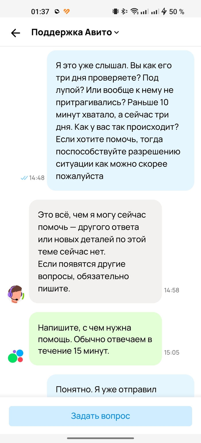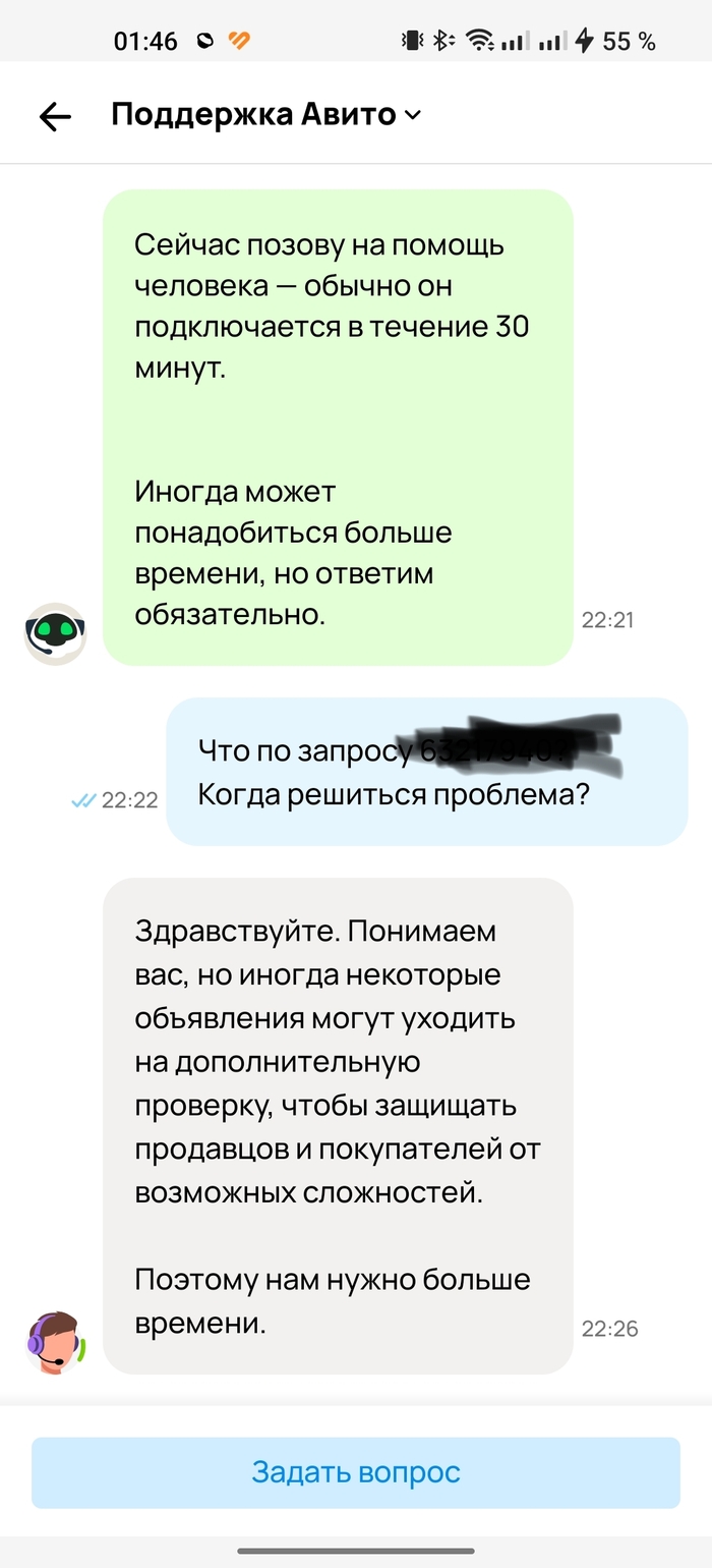 Мой пост может показаться как жалоба, истерика, тут люди оказывается могут и месяцами ждать, но безрезультатно, а у меня прошло всего три дня. Но для кого-то это мелочь, я же не могу так посчитать, я с таким не сталкивался, сейчас кризис на дворе, деньги нужны всем. Тем более, там, где три дня, там и неделя, две недели, тот же месяц. Я понимаю, что прописав бота, который отбирает объявления по качеству, наличию нарушений, тем самым, они экономят на времени и рабочей силе. Это всё логично и оправдано. Однако что делать тем, кому срочно деньги нужны, а они вынуждены ждать из-за того, что бот посчитал объявление подозрительным и его "отложили в долгий ящик"? Менять аккаунт, выкладывать по несколько раз одно и тоже, в надежде, что они пройдут проверку сразу, а то рискуешь оказаться у обочины приложения?