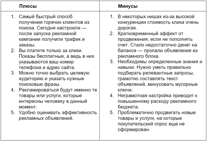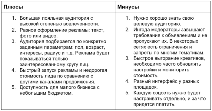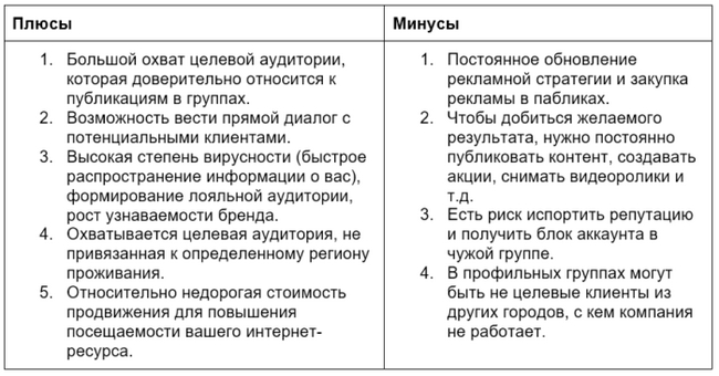 Особенности продвижения: оплата происходит за клик или тысячу показов. Нужно хорошо знать свою ЦА для настройки рекламы. Для получения новых клиентов важно постоянно иметь положительный баланс на счете аккаунта.