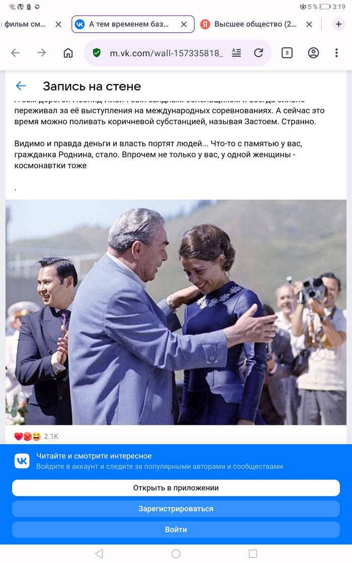 Задолбали "ностальгирующие" по СССР потребители. Не Роднина а именно вы уничтожаете смысл прошлого. Роднина конкретно в этой реплике ничего коричневого никуда не льет. Она говорит что прошлым жить не надо - будущее потому что нужно делать. А вы живете прошлым именно потому что привыкли, чтобы вам чтото ктото ДАЛО и каждый день тоскуете по временам когда вам каждый день ДАЛО прилетало.