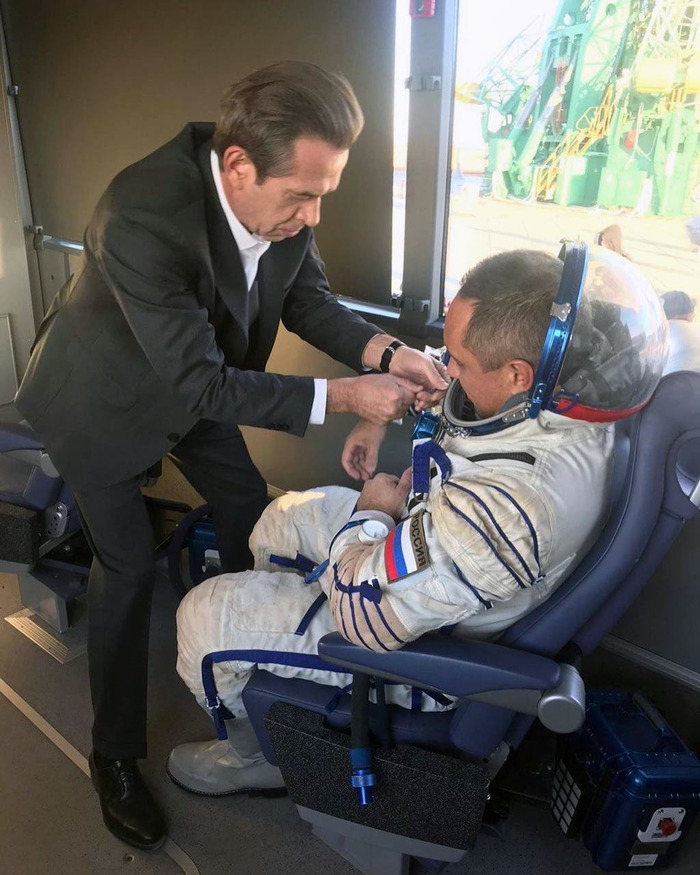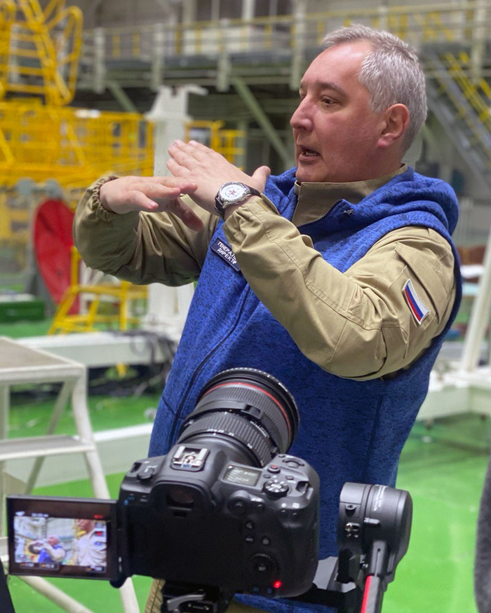 Дмитрий Рогозин руководит съёмочным процессом на площадке 254 на космодроме Байконур. Фото: Татьяна Рогозина