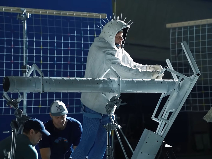 Космонавт Пётр Дубров на съёмках фильма «Вызов» на Земле. Один из немногих моментов в съёмках с использованием компьютерной графики. Фото: «Роскосмос Медиа» / Yellow, Black and White