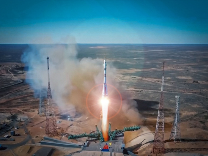 Пуск ракеты-носителя «Союз-2.1а» с космическим кораблём «Союз МС-19». На борту — «киноэкипаж», пункт назначения — МКС. Фото: «Роскосмос Медиа»
