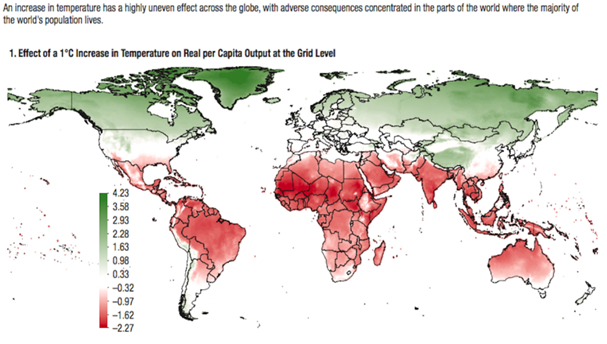 Неблагоприятный прогноз и в бактериологическом отношении. Пострадает, естественно, и экономика. По некоторым прогнозам, если климат продолжить изменяться дальше, то средний доход в некоторых странах упадёт на 75% к 2100 году. Особенно несправедливым является то, что от природных бедствий, экстремальной погоды и роста температуры страдают в первую очередь беднейшие страны. Глобальное потепление усиливает неравенство на планете.