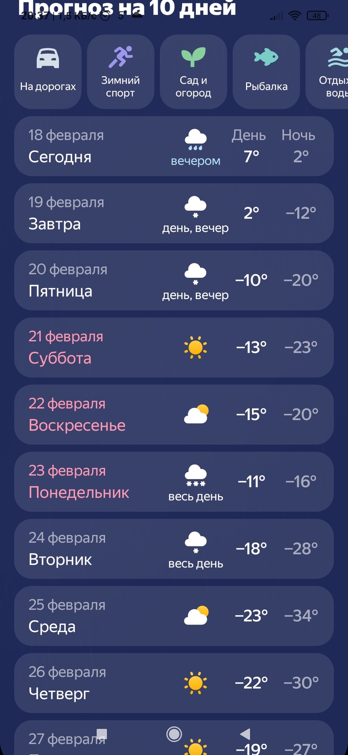 В ночь обещают -10. Утро будет весёлым... ( Ибо во дворах так же) Ну что, все запаслись топорами и ледоколами, соседушки?)) ( я хитрожопый, мой пепелац в сервисе в теплом боксе, хэхэ))